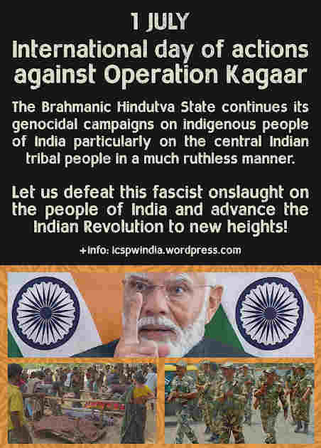 Under parollen av kontraterrorism har Adivasi folkens kastats ur sina hem, blivit tvingade att fly I sitt eget land. Deras byar har bränts ner och Asiens största salskog har militariserats. Den indiska staten verkar inte se det som I sitt intresse att bevara salskogen samt de områdena där Adivasi folket länge har haft självstyre, denna demokratiska stat verkar inte ha folkets intressen i synen, för marken är rik I naturresurser och mineraler som kan säljas till utländskt kapital. Den ökade militariseringen och övervakningen ses som inget förutom ett hot för dessa folk, som berövas sin rätt till att kontrollera sin egna framtid och sin egen mark. När deras skogar blir förgiftade, plundrade och nerhuggna I jakten på en ökad vinst, när deras skogar blir militariserade, så dör adivasifolken på profitens schavott.”6