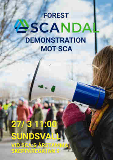 SCA är Europas största privata skogsägare med 2,7 miljoner hektar mark. Fredagen den 27 mars så inleddes dess årsstämma på Clarion Hotell i Sundsvall. Utanför stod en bred skara demonstranter från organisationer som Fältbiologerna, Skydda skogen, Rebellmammorna, Fridays for Future och Skogsupproret. Under veckan som ledde fram till årsstämman så utförde Skogsupproret en aktion mot SCA där de låste fast sig vid både grindarna och tågrälsen som ledde in till deras massafabrik Östrand i Timrå. Aktivisterna fick lagen kallad på sig av företaget, som gick till skydd för kapitalets intressen. Poliserna bröt upp aktionen genom att avlägsna demonstranterna från både räls och grinden till fabriken. Talespersonen för Skogsupproret, Alva Danielsson säger i ett pressmeddelande;
