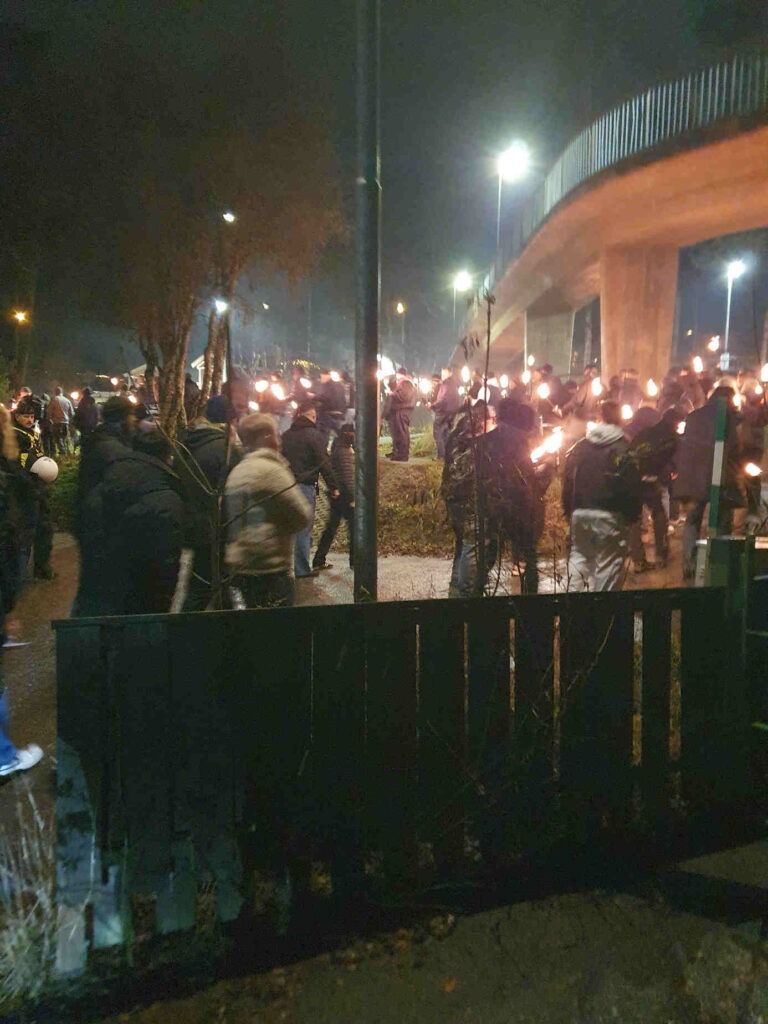 Hundratals antifascister stoppa nazisternas samling i Rönninge centrum. Men med polisens beskydd kunde de ändå, med svansen mellan benen, ta sig till Salem på mörka och ödsliga vägar.